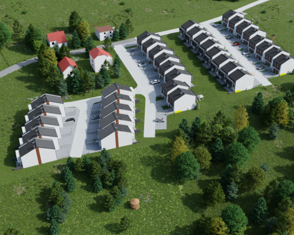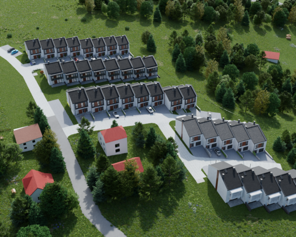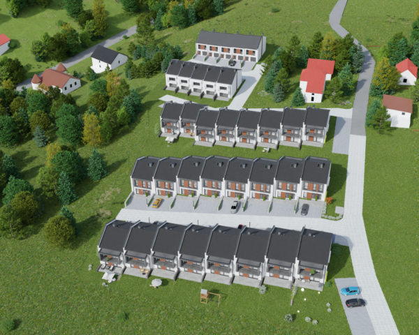 Budynki wykonane w technologii tradycyjnej z wysokiej jakości materiałów – ściany murowane, stropy żelbetowe, więźba dachowa drewniana, a dach pokryty dachówką płaską. Spełniają wymagania standardów WT 2021. Każdy lokal mieszkalny posiada własne miejsce postojowe bezpośrednio przed budynkiem. Na terenie inwestycji znajdzie się również kilkanaście dodatkowych, ogólnodostępnych miejsc postojowych dla samochodów mieszkańców i ich gości.rozwiń ∨